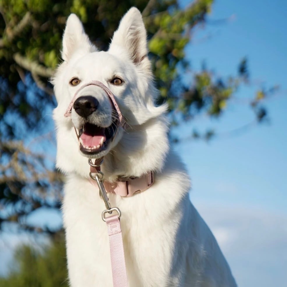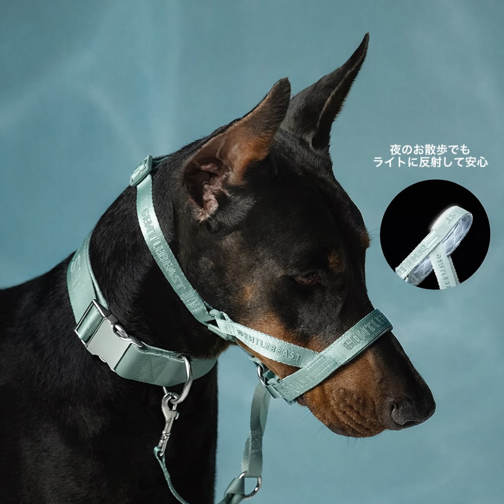 引っ張りをやさしくコントロールするお散歩サポートアイテム。首ではなく顔の向きをサポートすることで、わんちゃんの引っ張りを軽減します。