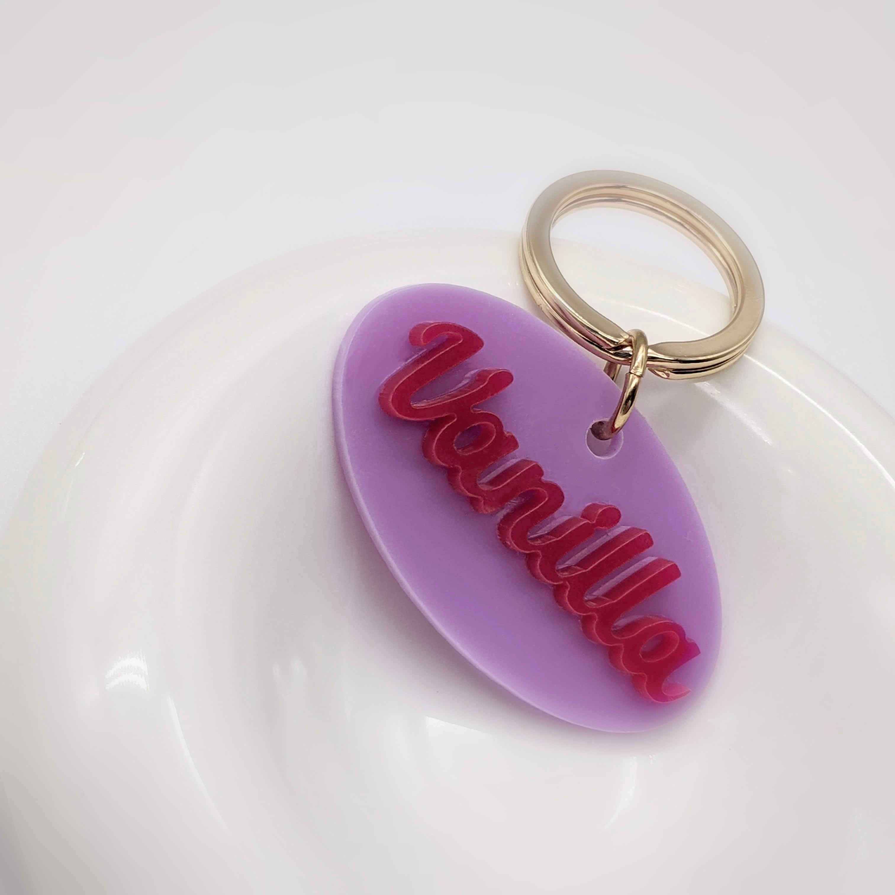 海外のおもちゃをイメージした、ポップでカラフルなアクリルネームタグ。ペットのお名前とお好きなカラーを自由に組み合わせて、カスタムオーダーが可能。見た目の可愛さはもちろん、軽量で取り付けも簡単。